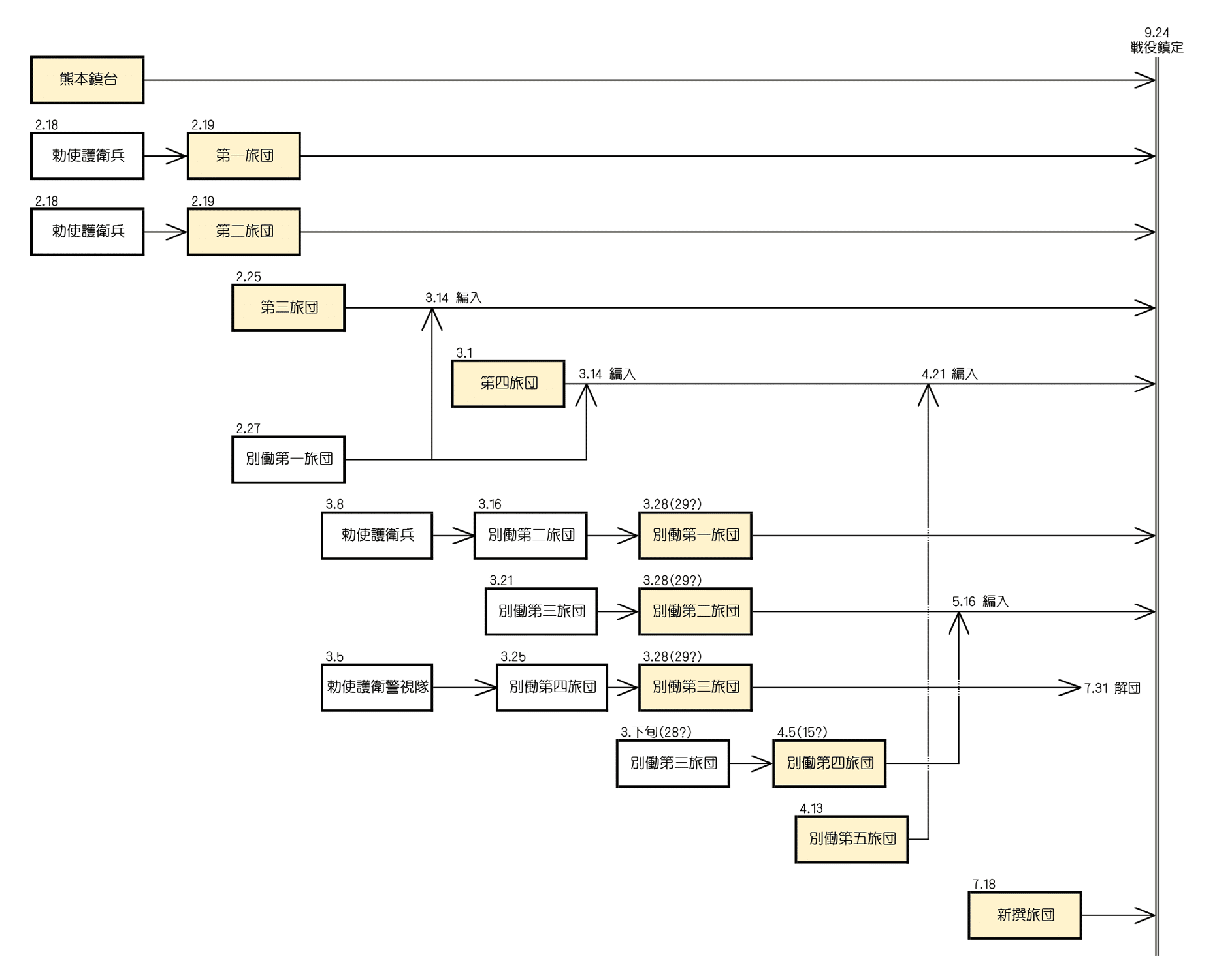 | 1877年9月 | 別働第一旅団 | 探偵トシテ佐敷ヨリ大口ノ方へ向ケ発遣ス九月二日午前帰報ス (杵付鎮静・髙野定義・宮川英相) | ||||||||